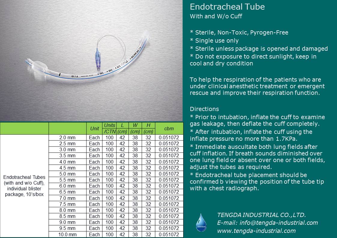 * After intubation, inflate the cuff using the inflate pressure no more than 1.7KPa.